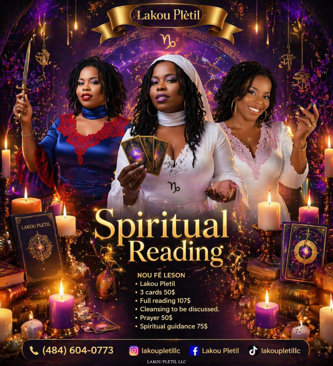 Private Readings are provided as spiritual guidance, intuitive insight, and personal reflection services. They are not a substitute for professional medical, legal, financial, or psychological advice. - No Professional Advice